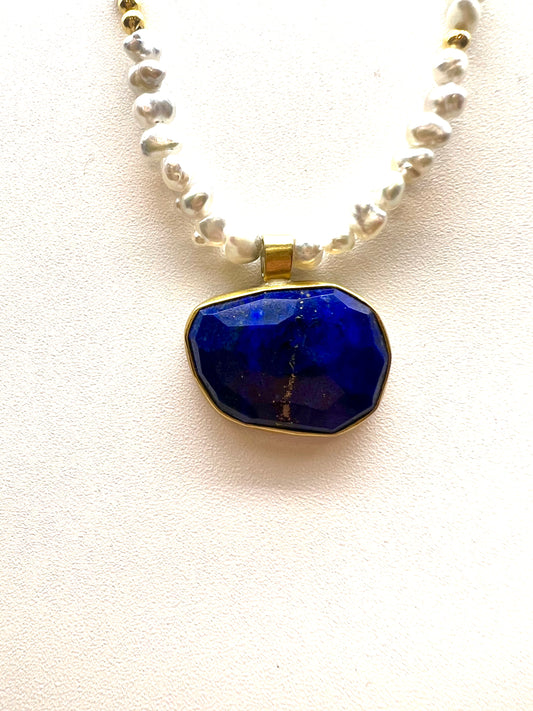 Keshi Pearl, Lapis, 22kt Gold Necklace