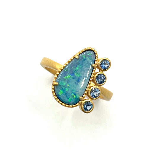 18KY Australian Opal & Bezel-Set Blue Sapphire Ring