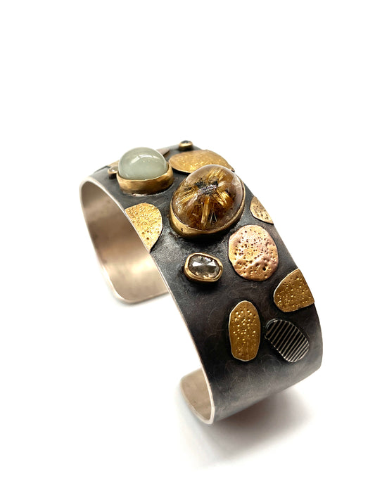 Sterling Silver & Gold Mokume Gane Bracelet with Pyrite in Schist, FB0141, Lynda Bahr