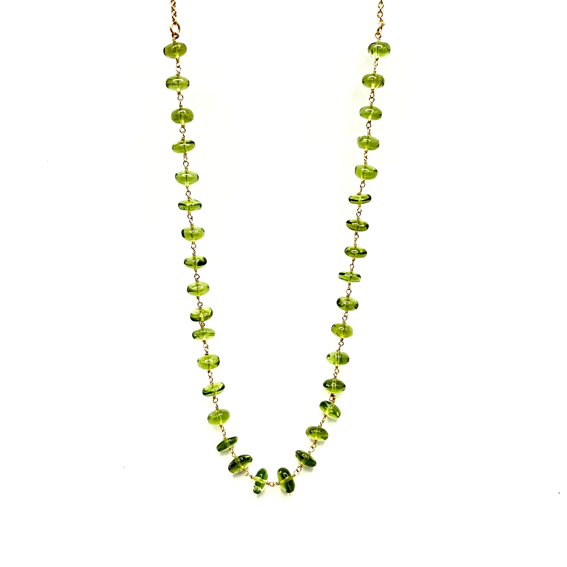 18 karat yellow gold chain necklace featuring 90 carats of peridot rondelles.