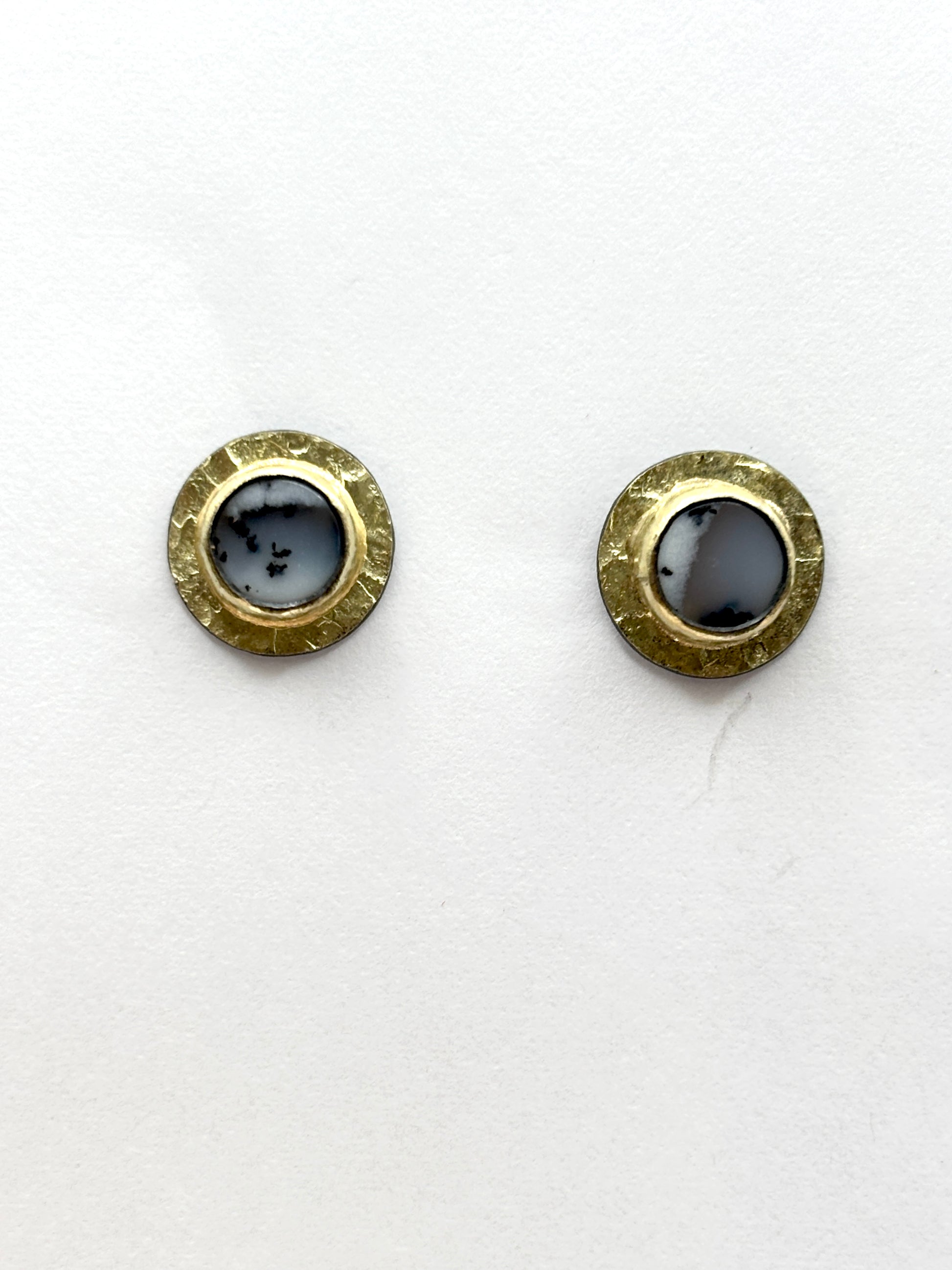 OOAK Hammered Border Bezel Post Earrings, oxss+ 22k+ dendritic opal, HG254, Heather Guidero