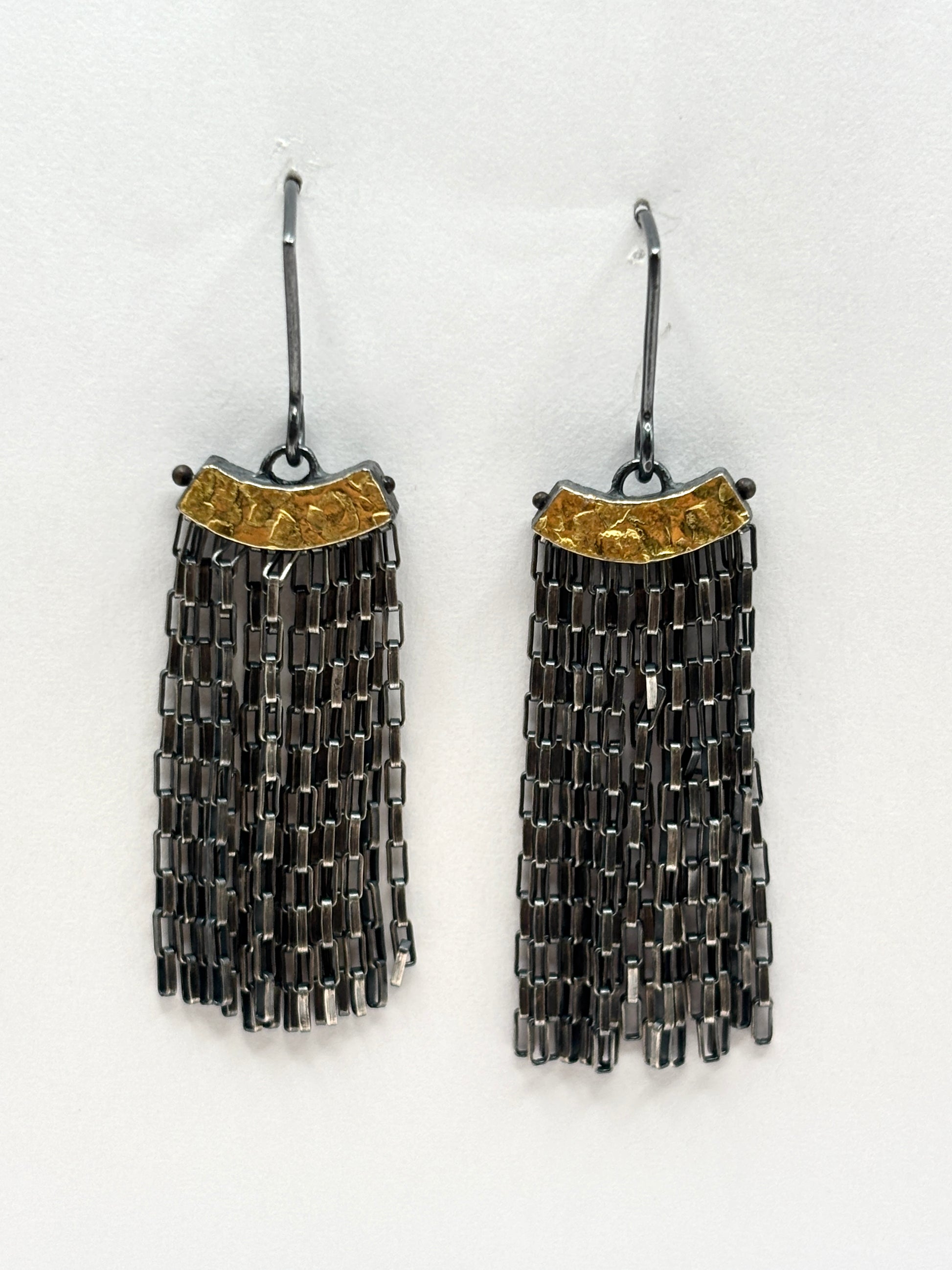 Oxidized Sterling Silver & 22kt Arch fringe Earrings, HG253, Heather Guidero