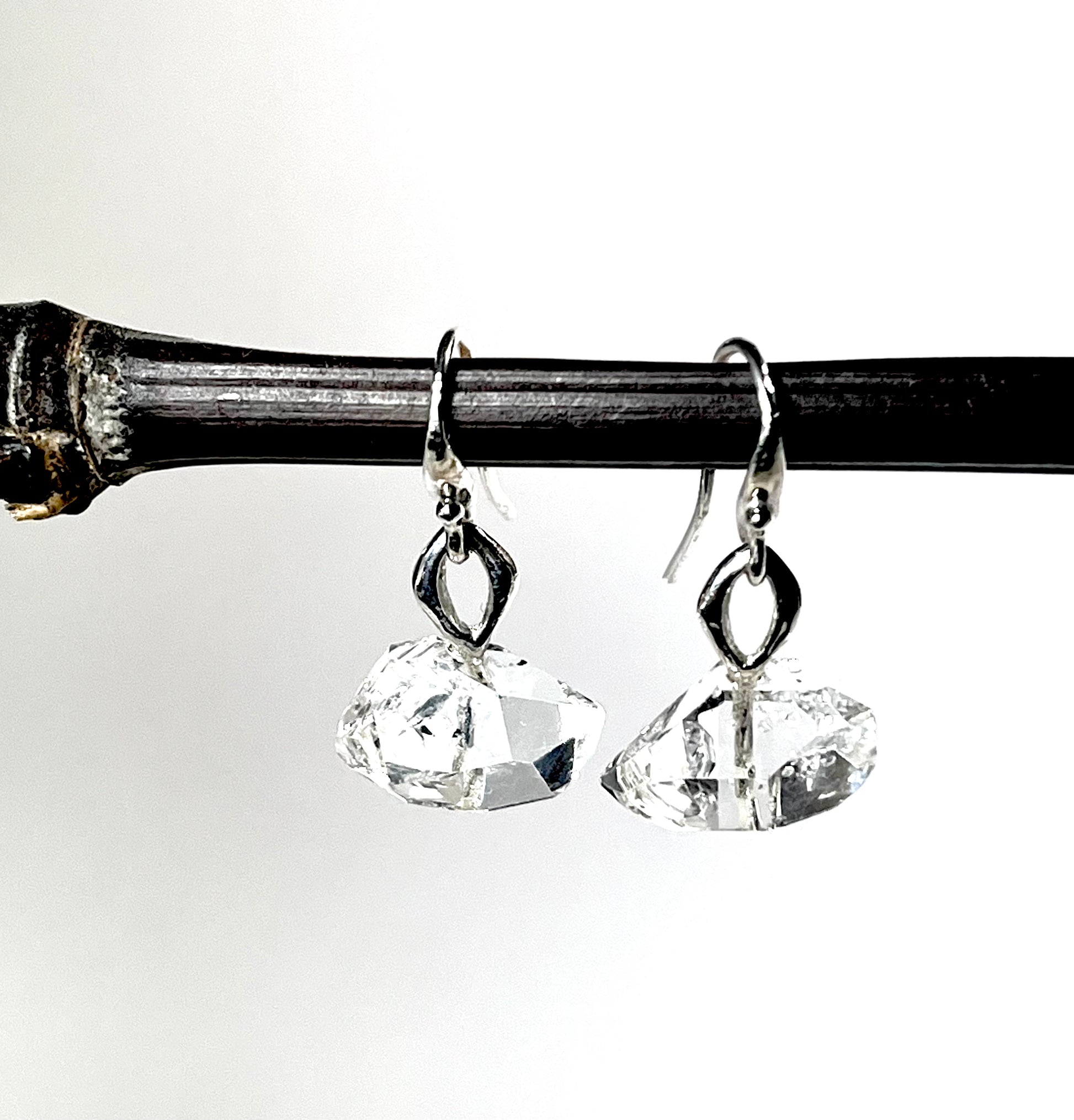 A pair of sterling silver “Eye” amulet earrings, each set with a natural 13–14 mm Herkimer quartz. These luminous crystals add clarity and sparkle, creating a protective yet modern statement piece.