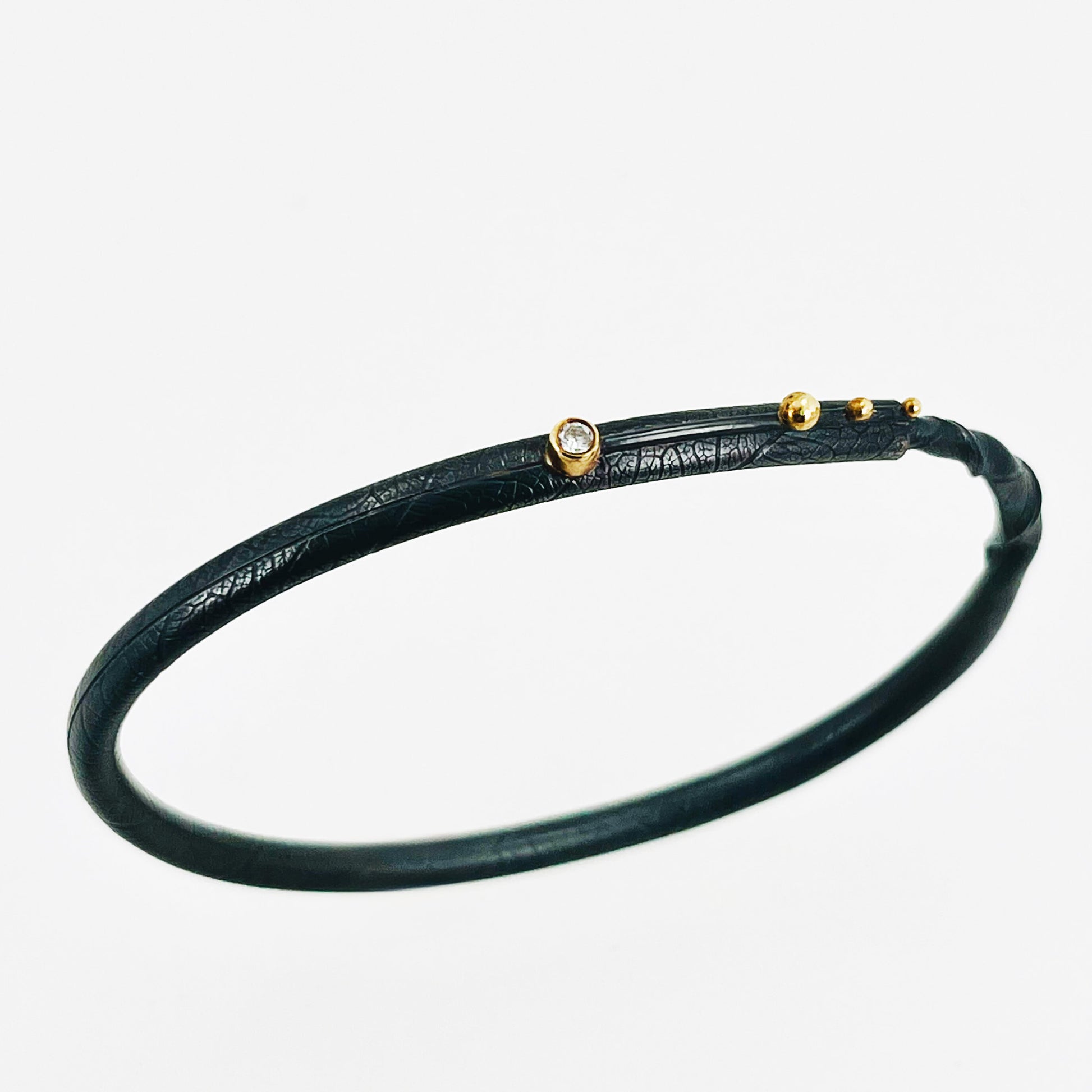 A refined sterling silver bracelet featuring a graceful line of descending-sized granules. A single full-cut white diamond, bezel-set in 18k gold, highlights the composition—balancing texture, brilliance, and modern elegance.