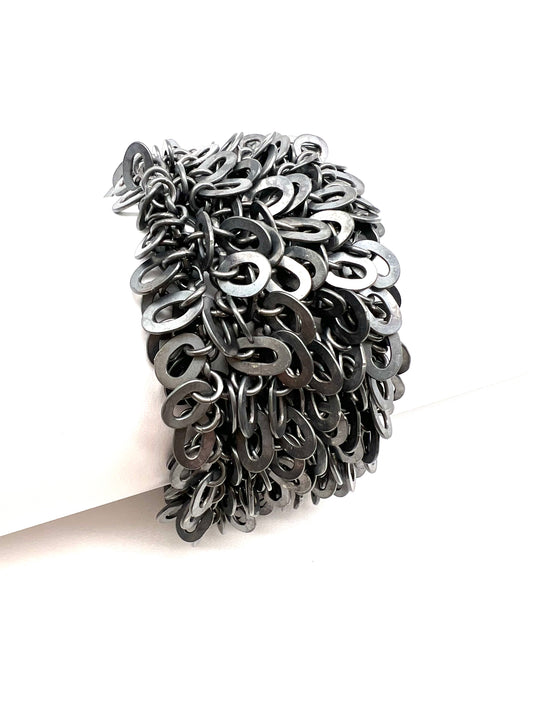 ARTIST’S STATEMENT For the past few years, I have been using sterling silver tubing to make my work, in addition to 22k bimetal. I am inspired by the industrial aesthetic of the material, finding endless design possibilities. Using change of scale and repetition of form, my goal is to create timeless work that is modern and wearable. The addition of diamonds to the collection adds a subtle sparkle and elegance. BIO Elisa is a graduate of the CA College of Arts & Craft in the metal arts department. Upon graduation in 1994 she started a studio in Berkeley CA where she makes one of a kind and production jewelry. She exhibits her work internationally.